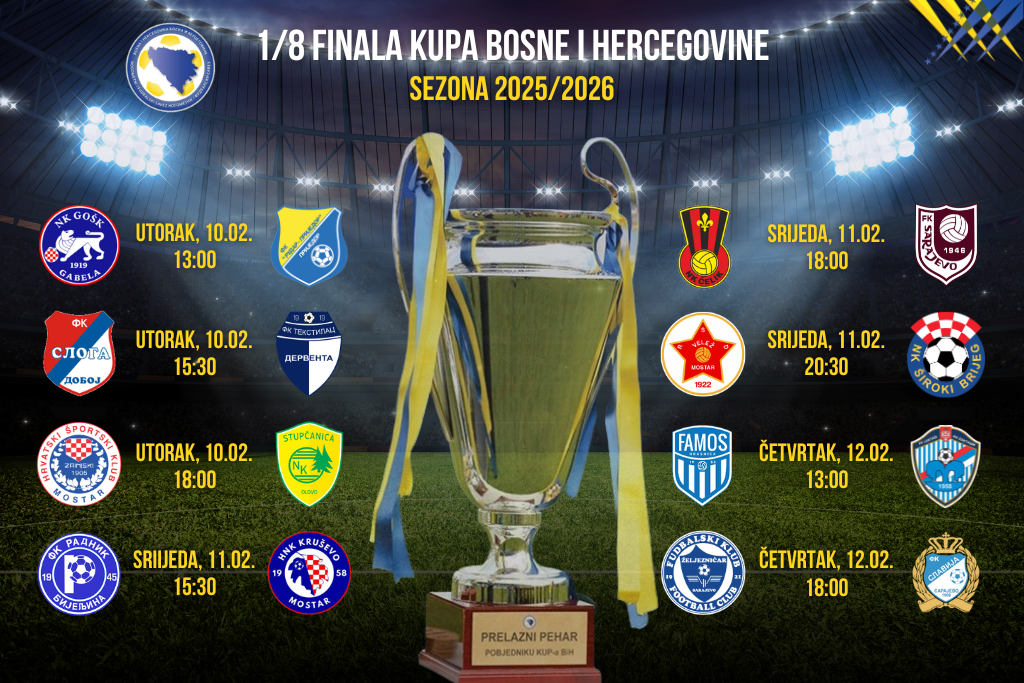 Službena lica za utakmice osmine finala Kupa Bosne i Hercegovine 2025/26.