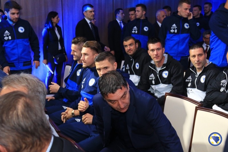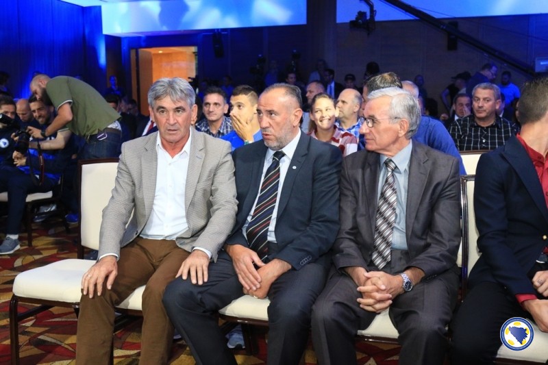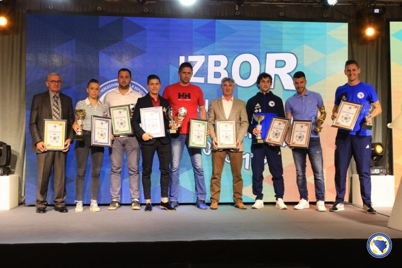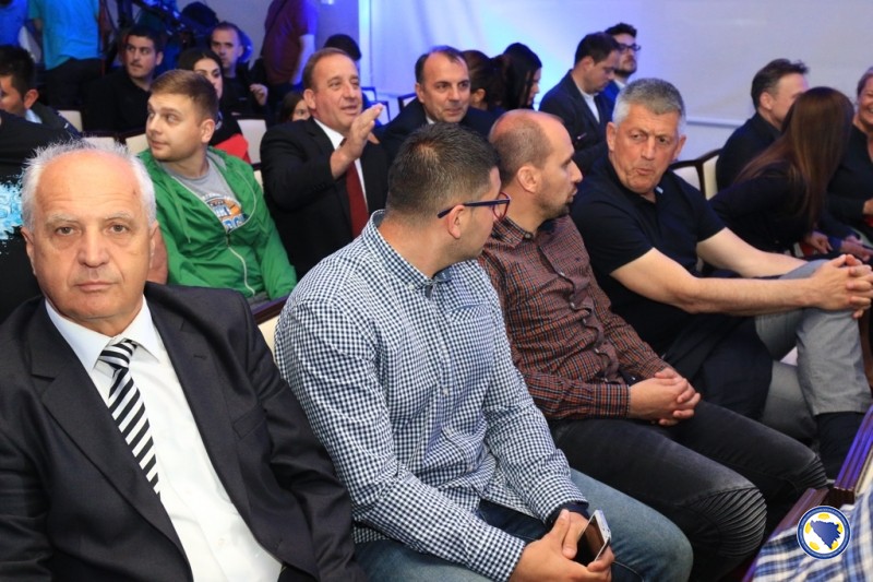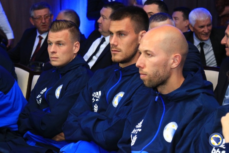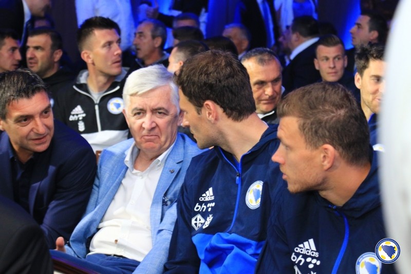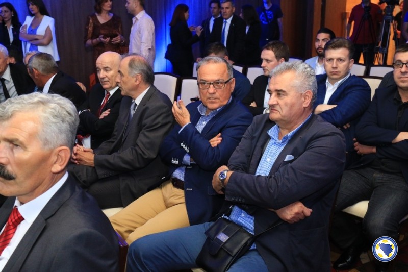 Večerašnjoj ceremoniji su prisustvovali i reprezentativci BiH koji se spremaju za utakmicu kvalifikacija za Svjetsko prvenstvo protiv Grčke, kao i selektor Mehmed Baždarević sa članovima stručnog štaba.