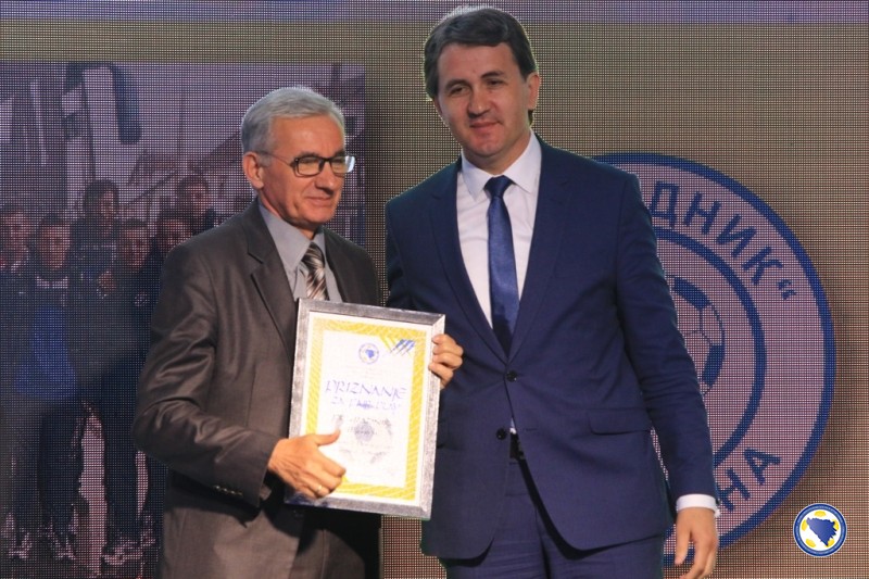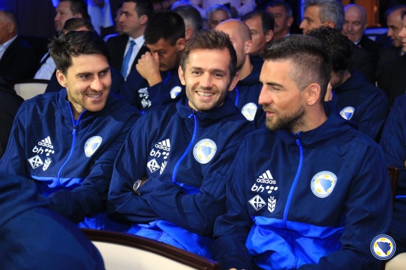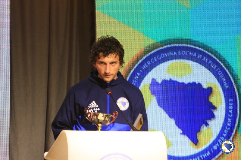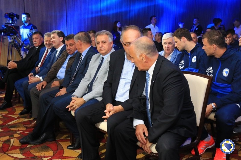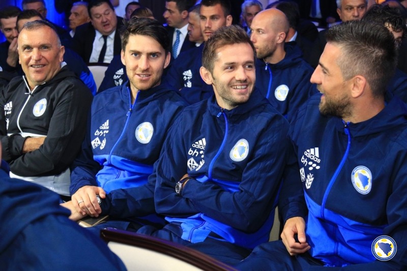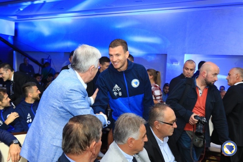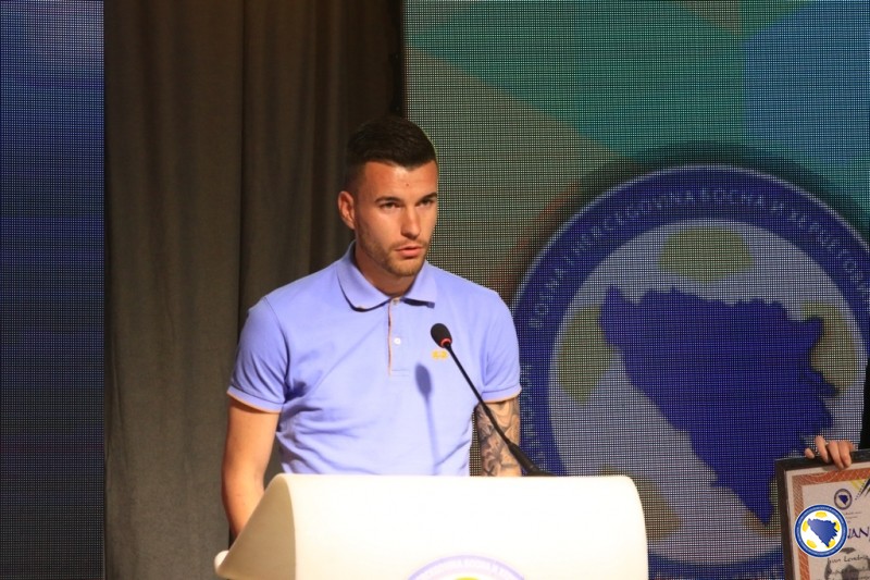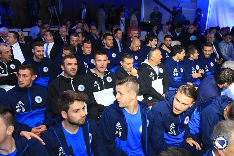 Večerašnjoj ceremoniji su prisustvovali i reprezentativci BiH koji se spremaju za utakmicu kvalifikacija za Svjetsko prvenstvo protiv Grčke, kao i selektor Mehmed Baždarević sa članovima stručnog štaba.