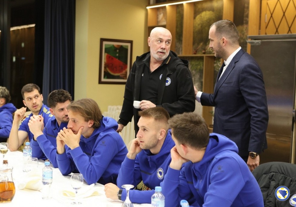 Tokom susreta sa igračima i stručnim štabom, predsjednik Saveza poželio je reprezentativcima mnogo sreće i uspjeha u narednim izazovima, istakavši važnost zajedništva, odgovornosti i maksimalnog angažmana u predstojećem susretu protiv selekcije Velsa.