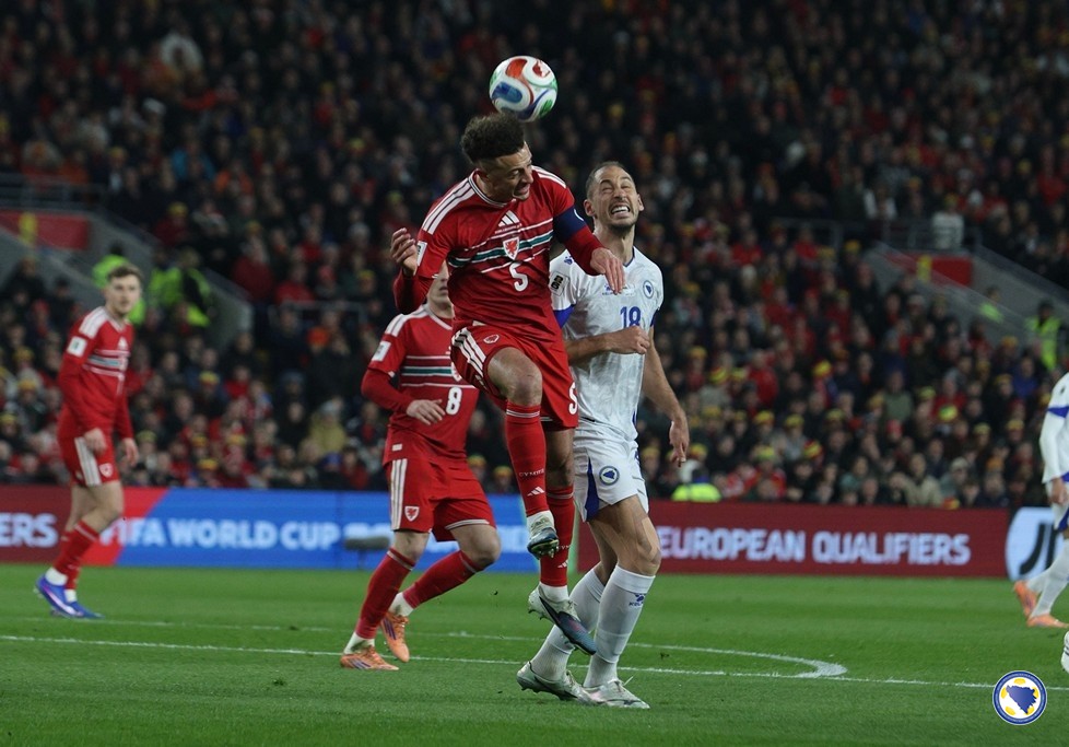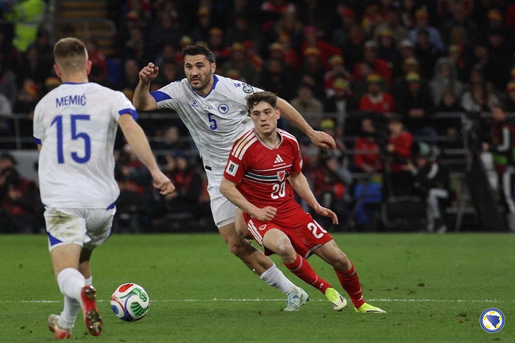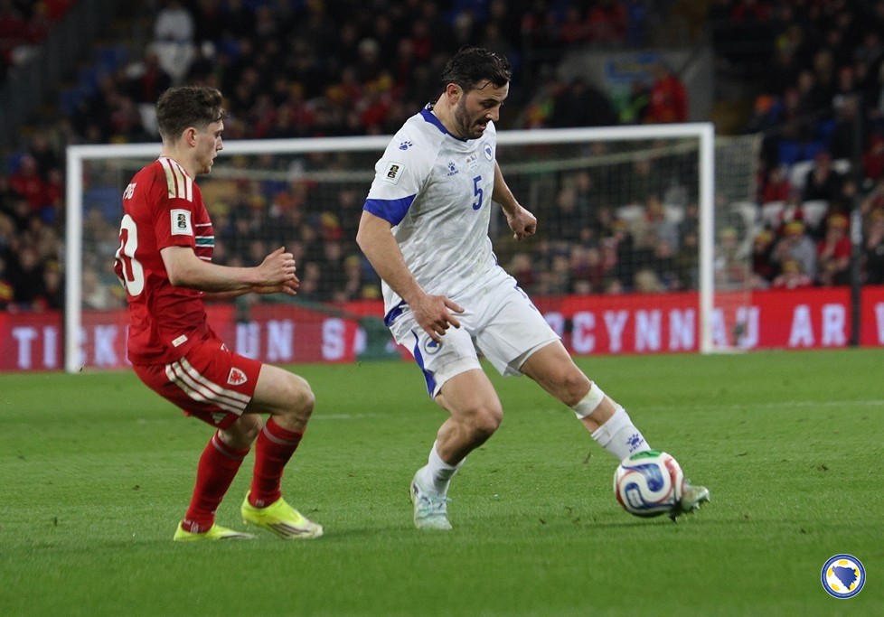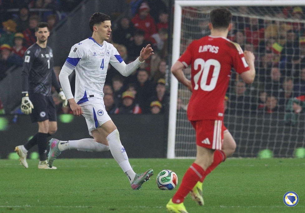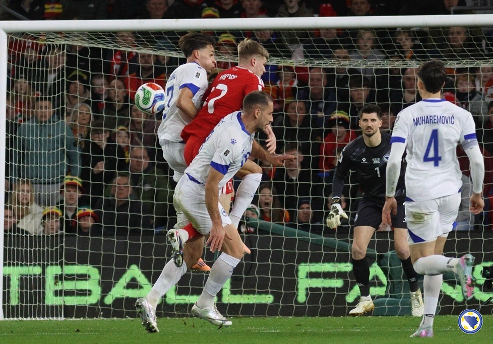 Vels je imao veći posjed lopte u prvih 45 minuta, a prvu ozbiljniju priliku na utakmici vidjeli smo u 22. minuti, kada je Harry Wilson udarcem sa 15 metara iskosa pogodio stativu. Isti igrač je u 40. minuti pokušao iz slobodnog udarca da iznenadi golmana naše selekcije, ali je Nikola Vasilj bio koncentrisan i na pravom mjestu.