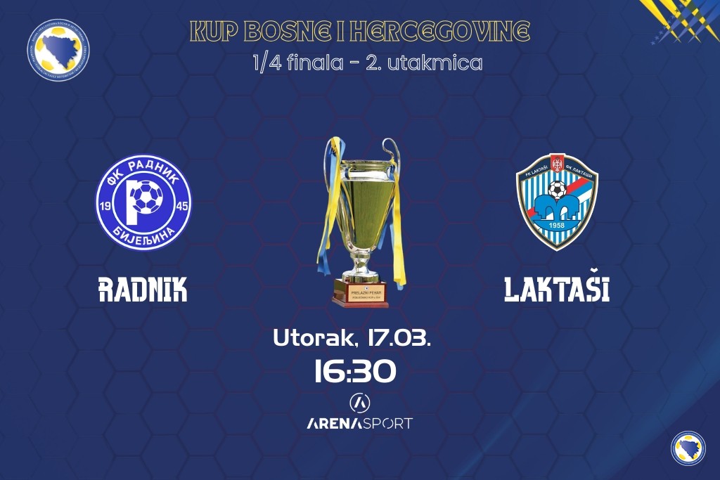| FK RADNIK - FK LAKTAŠI | Bijeljina, 17.03.2026. 16:30 h | TV ARENA | |||||
