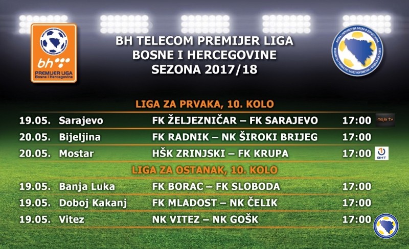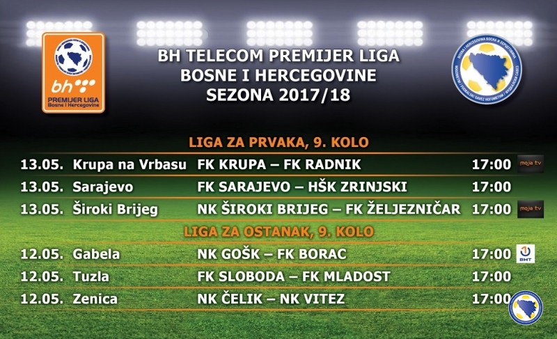 11. maj 2018.Utakmice 9. kola BH Telecom Premijer lige Bosne i Hercegovine – za prvaka i za ostanak biće odigrane za vikend, 12. i 13. maja, a sastaće se: