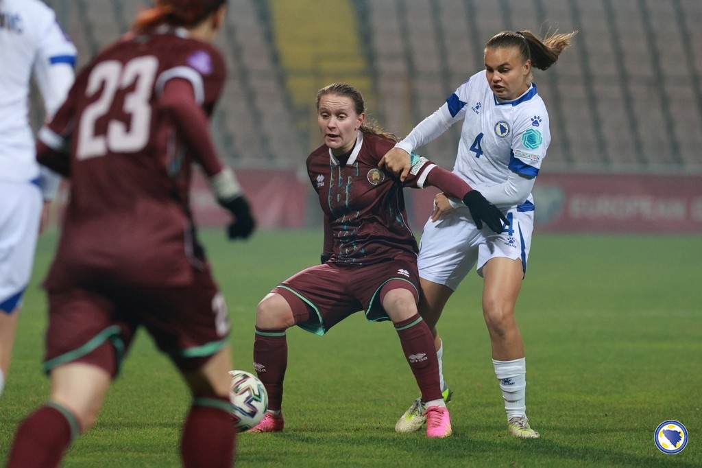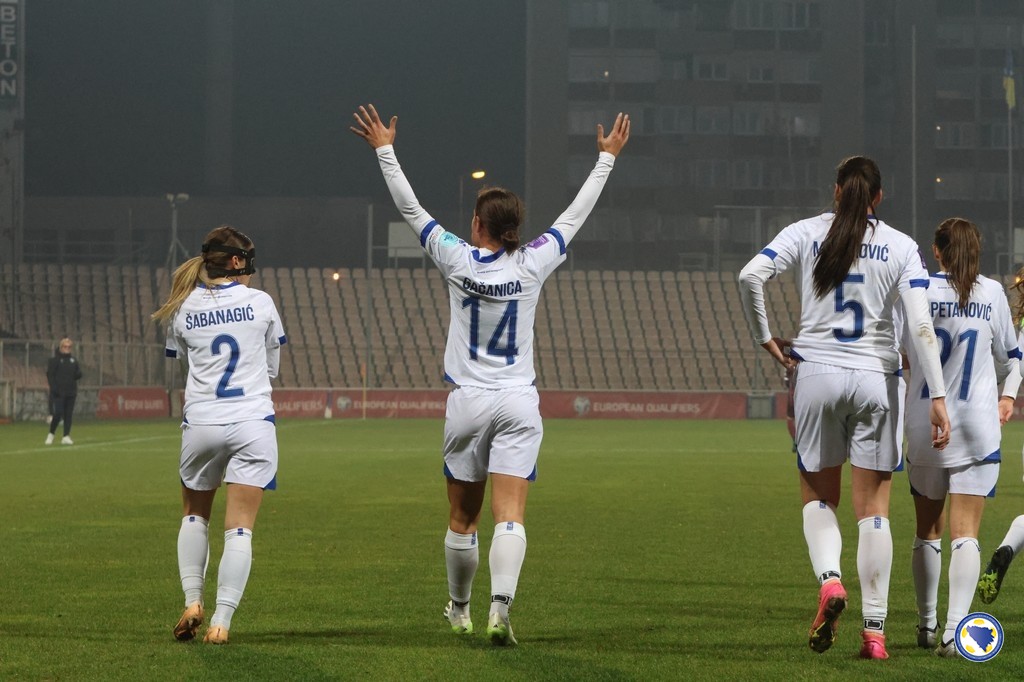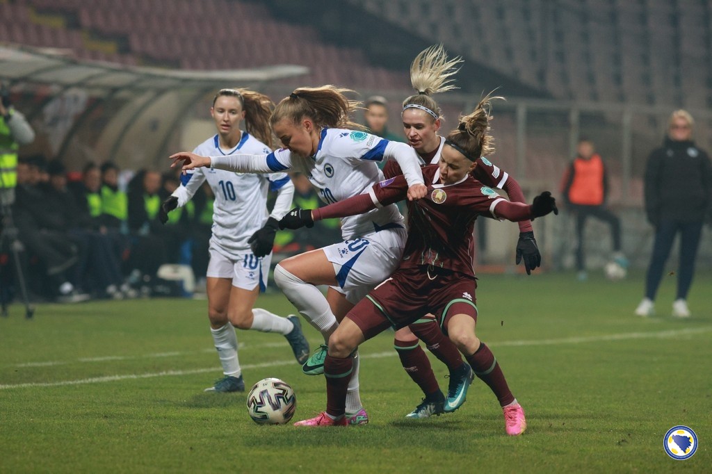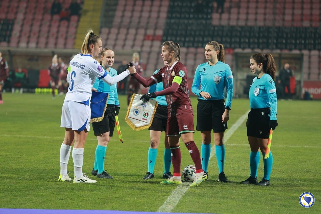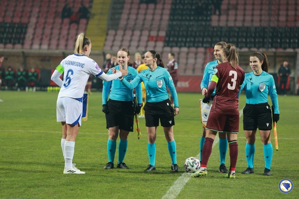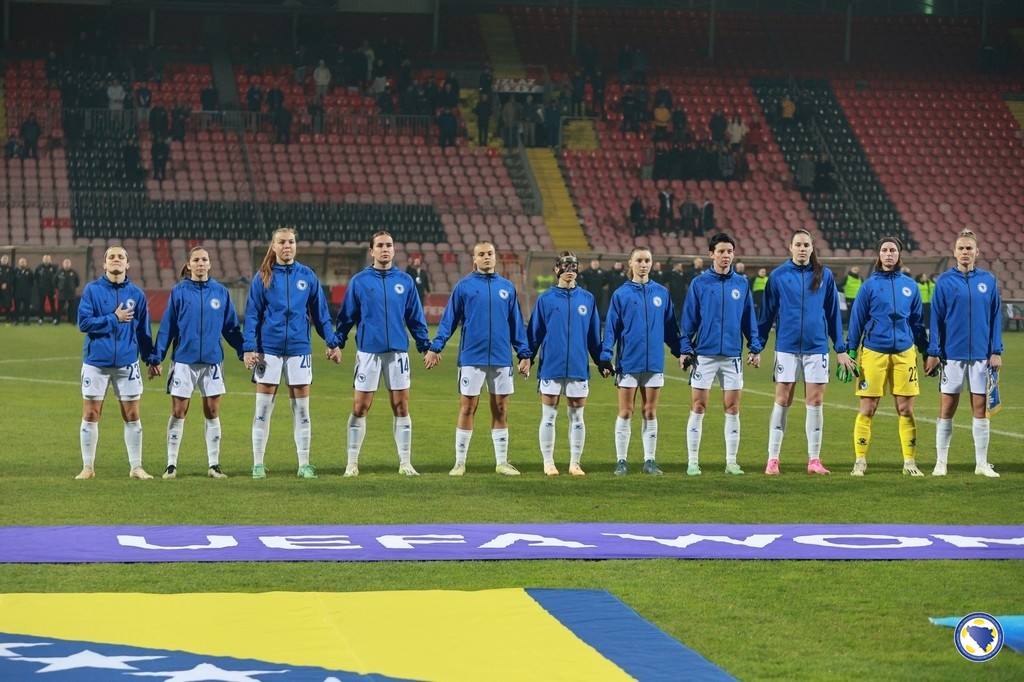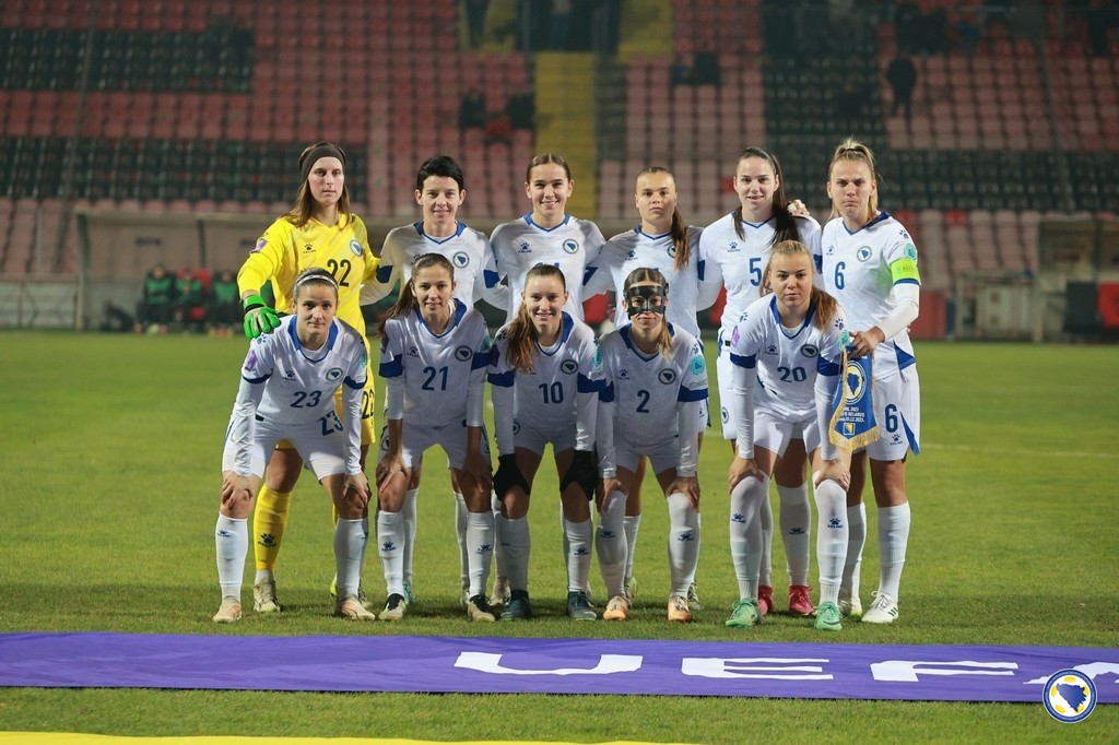 Bosna i Hercegovina: Jelena Gvozderac, Ena Šabanagić, Melisa Hasanbegović, Gloria Slišković, Selma Kapetanović, Marija Ana Milinković, Aida Hadžić (68. Merjema Medić), Emina Ekić (90+3. Una Rankić), Maja Jelčić, Amela Kršo, Minela Gačanica (60. Dajana Spasojević). Selektorka: Samira Hurem.