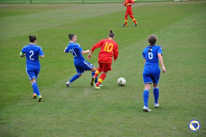 U prvom poluvremenu nije bilo mnogo prilika. Prvi pokušaj imale su izabranice Ilije Lucića u 24' kada je šut Elme Husić sa dvadesetak metara Milica Knežević izbacila u korner. Slično je pokušala na drugoj strani Jelena Karličić u 28', ali je golmanica bh tima Imam Šljivo uhvatila loptu.